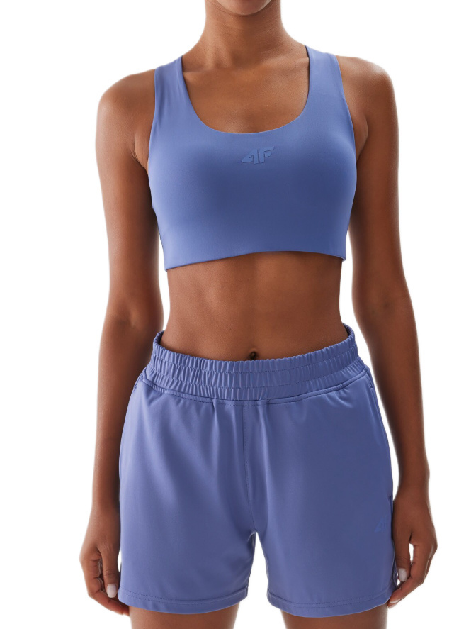 Biustonosz sportowy damski z niskim wsparciem 4F bezszwowy niebieski XS
