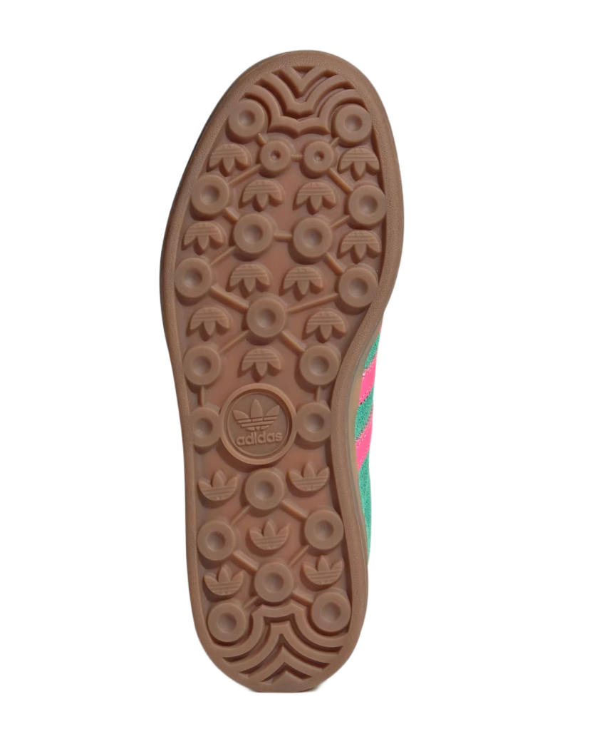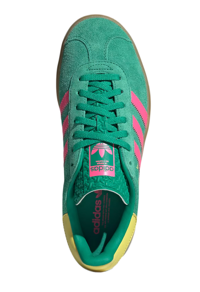 - Klasyczny model adidas Gazelle Bold w wersji damskiejWykonane z wysokiej jakości zamszu w żywym odcieniu zieleniRóżowe paski i logo adidas – ikoniczne detale markiElastyczna i przyczepna podeszwa dla komfortu chodzeniaUniwersalny design pasujący do spodni