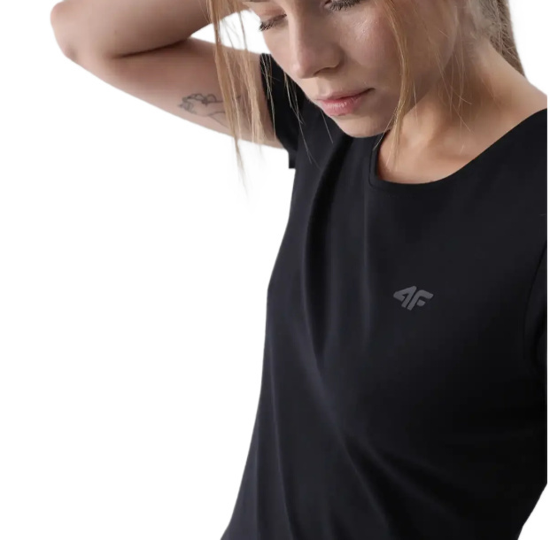 Koszulka damska bawełniana 4F TSHIRT F1845 czarna luźny krój na codzień XS