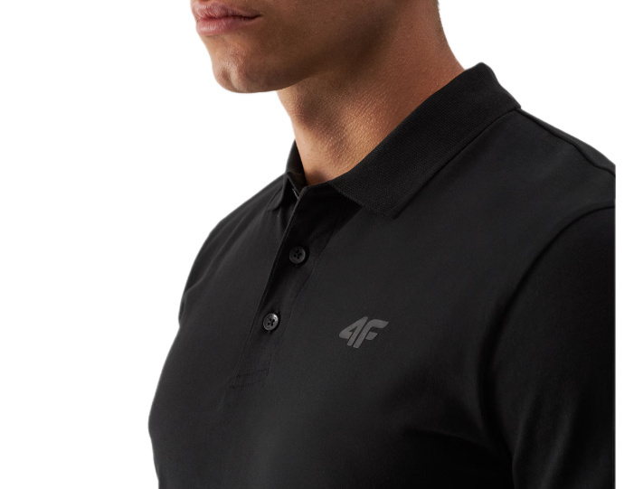 Koszulka polo męska regular 4F M316 bawełniana czarna gładka z logo S