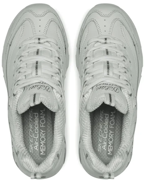 ⭐️ Charakterystyczne dla linii D'Lites detale, takie jak kontrastowe wstawki i logo Skechers, dodają subtelnego uroku